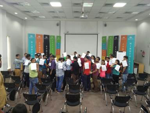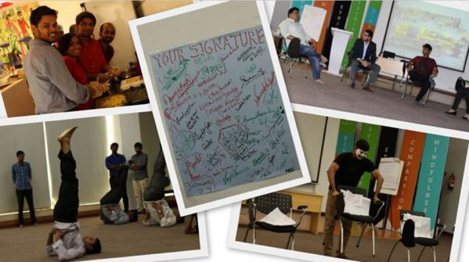 As part of the Self Leadership course “Face Your Fear” initiative at SOIL people have devoted time in doing activities which helped them deal with their fear and overcome obstacles intruding their ideas from conception to execution. Students were grouped into teams and made to perform with a true spirit in various categories like singing, dancing, role playing and many such activities which helped them overcome fear. They practiced their planned performance over a period of time and performed during the ‘Initiation Day”. Some of the showcases by these teams are; “Salad, Jhaalmudi and Nimbu paani by the cooking team” soothed the taste buds of everyone. The Art and Craft group ideas were enjoyed by all and it brought back the nostalgic childhood memories to each and every person who witnessed that day. Our in-house poets Rahul and Karan recited their soulful poems composed by them for the occasion. The mime act by Sri Kumar was splendid and received a well-deserved standing ovation from Mr. Anil Sachdev and the audience. The event such up for one year MBA students as well as others was a success.