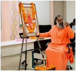 He entered with his full gracein the calm SOIL auditorium, following very powerful stepsand we felt overwhelmed in his presence. His structured way of thinking, tranquility of mind, delivering speech in a verypositive manner and stressing each and every word with a stern but peaceful way, made all of us in the classroom enlightened. This was how our journey of one and half hours with Swami Chidrupananda began on 30th June, 2014.